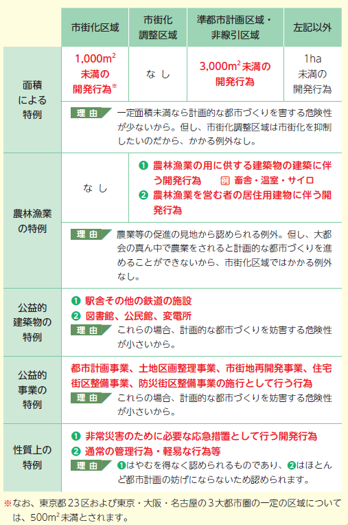 注:医療施設、社会福祉施設、学校等の開発行為も、開発規模以上であれば、