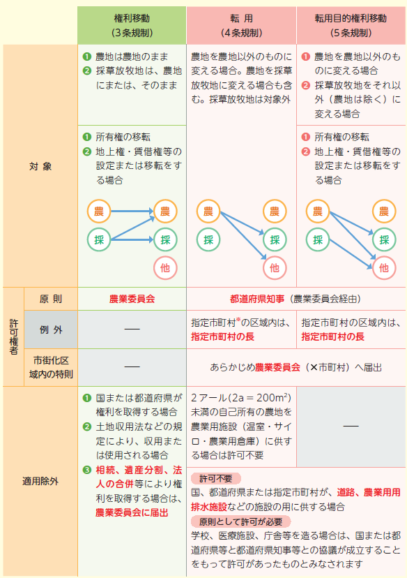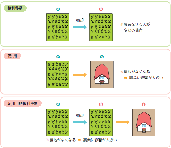 ▪「農地を農地以外に…」 ➡ 転用 or 転用目的権利移動