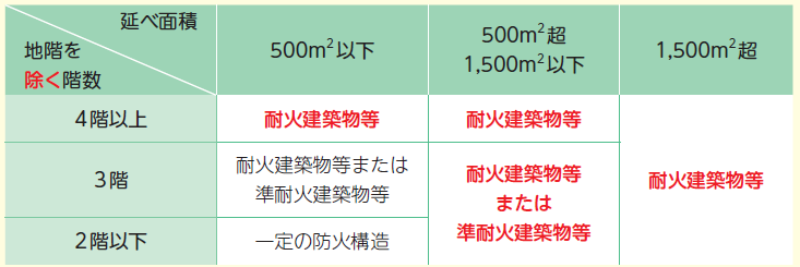 耐火建築物以外の一定の耐火設備を施した建築物で、政令で定める耐火構造に準ずる性能を有するもの。