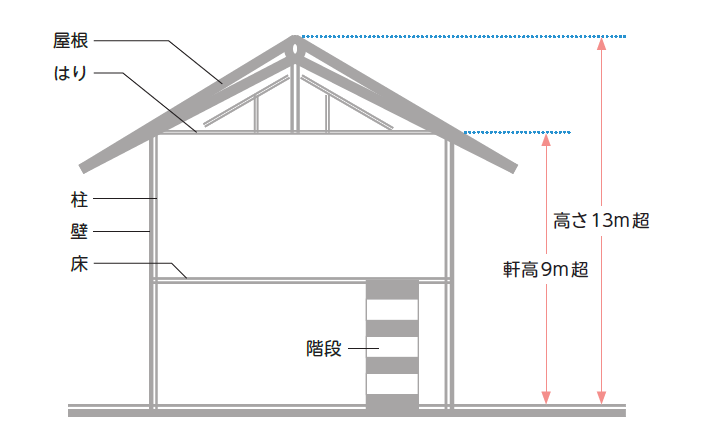 え、もしくは軒の高さが9mを超える建築物