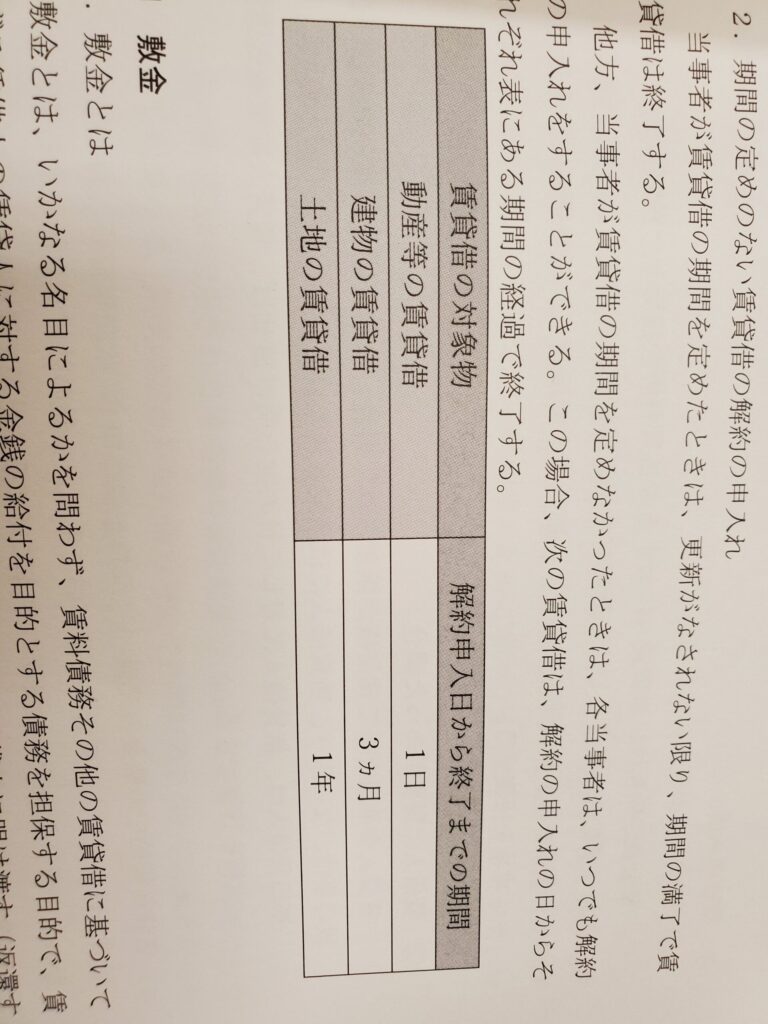 当事者が賃貸借の期間を定めたときは、更新がなされない限り、 期間の満了で 貸借は終了する。他方、当事者が賃貸借の期間を定めなかったときは、各当事者は、いつでも解約 の申入れをすることができる。この場合、次の賃貸借は、解約の申入れの日からそ れぞれ表にある期間の経過で終了する。