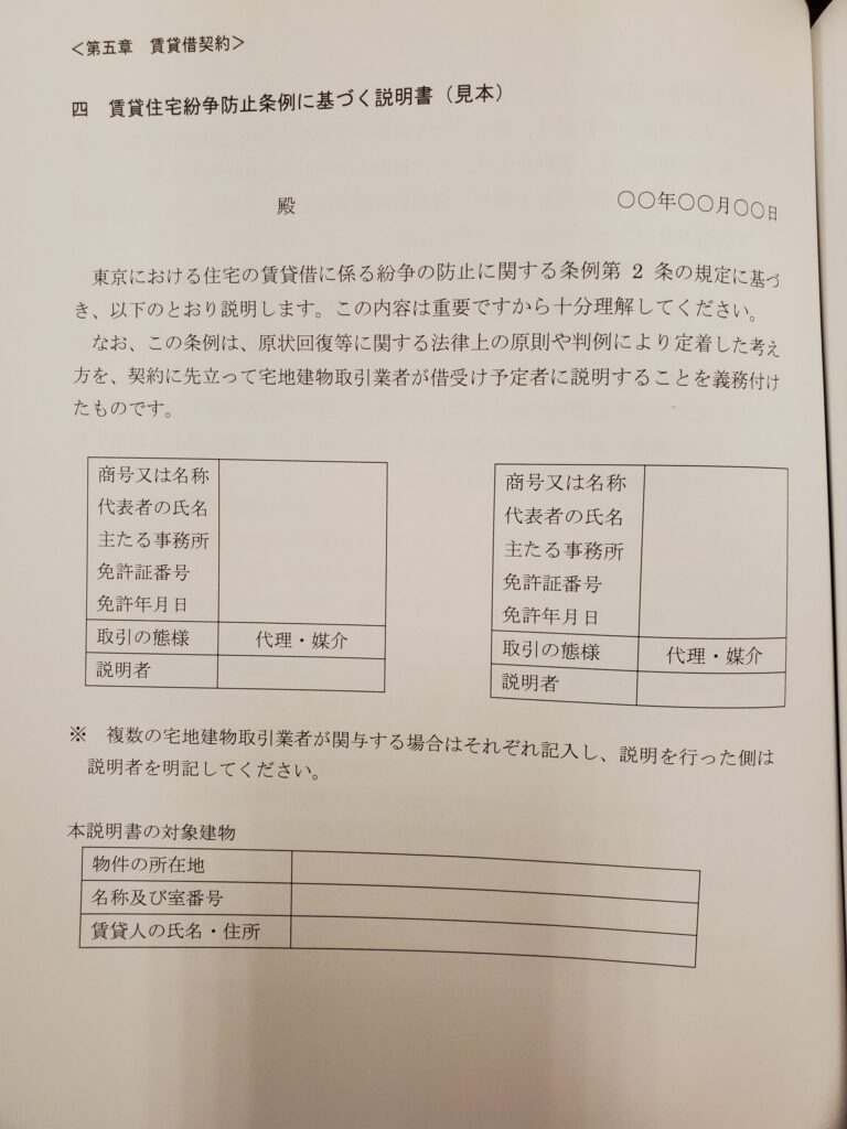 四 賃貸住宅紛争防止条例に基づく説明書 (見本)