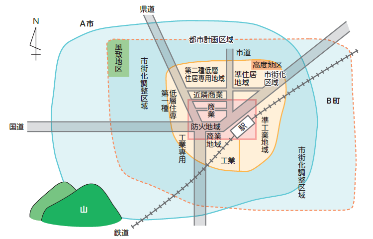 ・特別用途地区 ・高層住居誘導地区 ・高度地区 ・高度利用地区 | ・特定街区 ・防火・準防火地域 ・景観地区 ・風致地区 | ・特定用途制限地域 |